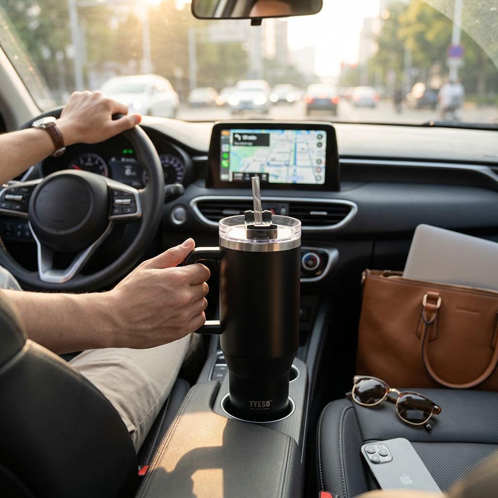 Yes, the Tyeso Tumbler is designed to fit most standard car cup holders, making it ideal for daily commutes and road trips.